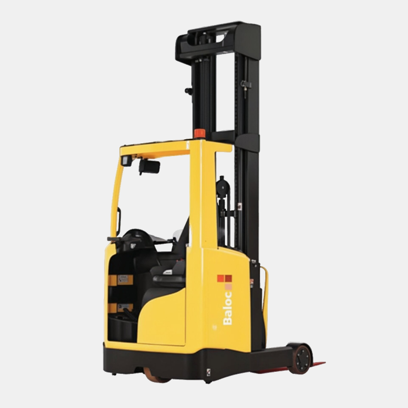 Empilhadeira retrátil com elevação máxima de 9500 mm e capacidade nominal de 1600 kg.