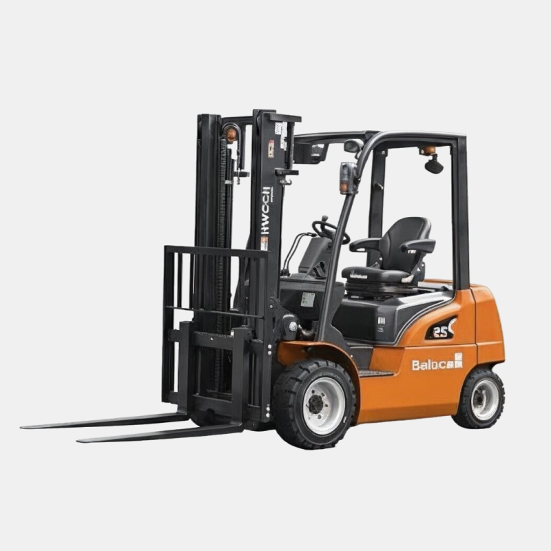 Empilhadeira contrabalançada de 2,5 toneladas com elevação dos garfos até 4700 mm e bateria de lítio.