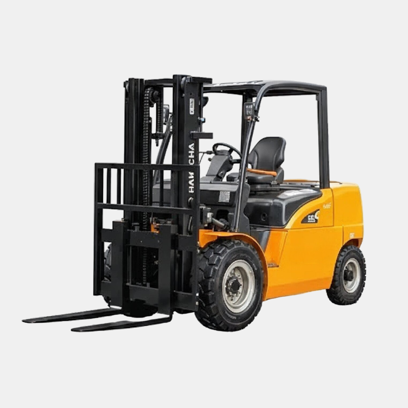 Empilhadeira contrabalançada de 3,5 toneladas, elevação dos garfos até 4700 mm e bateria de lítio.